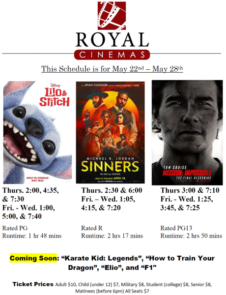 This Week’s Showtimes at Royal Cinemas as of May 22nd