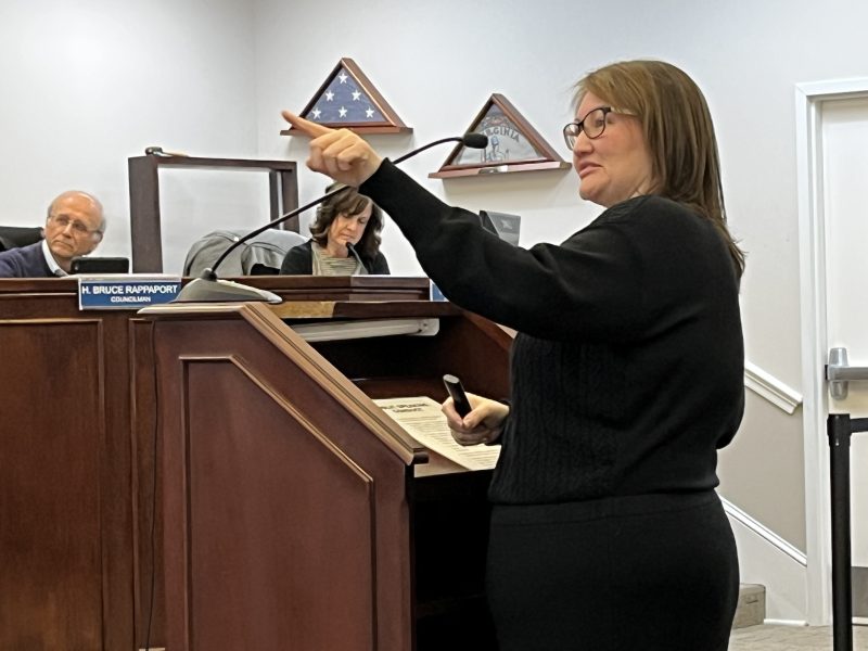 Planning Director and Zoning Administrator Lauren Kopishke explains the finer points of a rezoning application to the council.