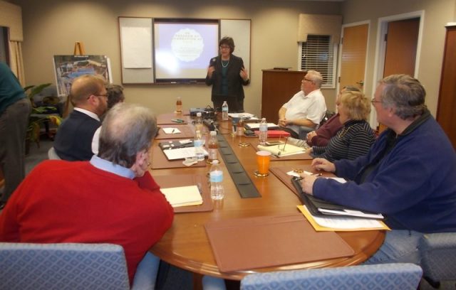 Town Council in open work session mode on Jan. 27, prior to adjourning to closed session to discuss personnel, among other things. Council Clerk Jennifer Berry on the job at back left, was not invited to stay for that discussion.