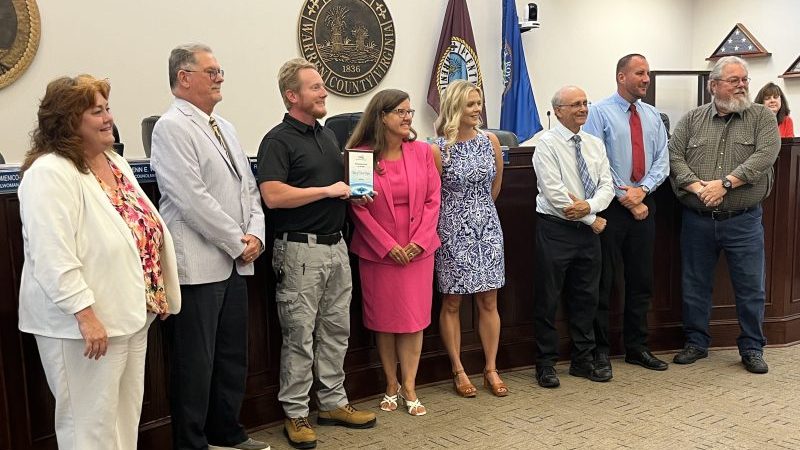 Chris Vaught is recognized by the mayor and the council for Virginia Waterworks Operator Class.