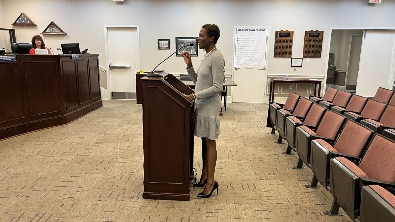 President of Reaching Out Now, Samantha Barber, addresses the council regarding her disappointment in not receiving from the Town the funds she had hoped to receive for the youth center currently being revitalized.