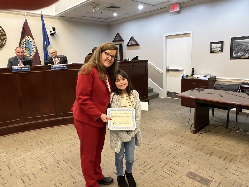 Town Council meets for regular meetings at Warren County Government Center on January 22. Below, after leading the gathering in the pledge of allegiance, Mia Perea receives a gift certificate from the mayor. Royal Examiner Photo Credits: Brenden McHugh.