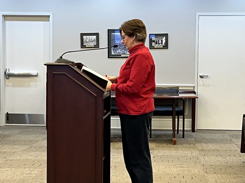 Melanie Salins speaks against the proposed zoning text amendment. Below, Connie Marshner speaks in favor of it.