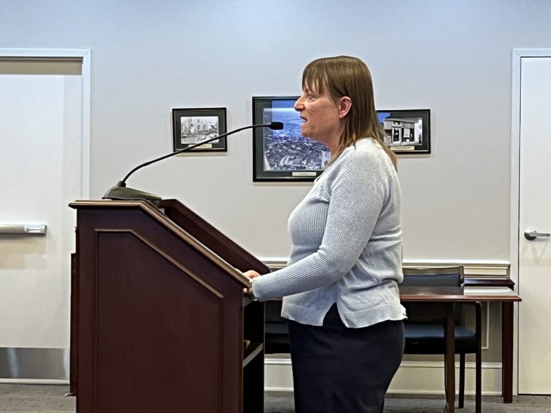 Planning Director and Zoning Administrator Lauren Kopishke explains to the council the finer points of a proposed text amendment to the Town ordinance.