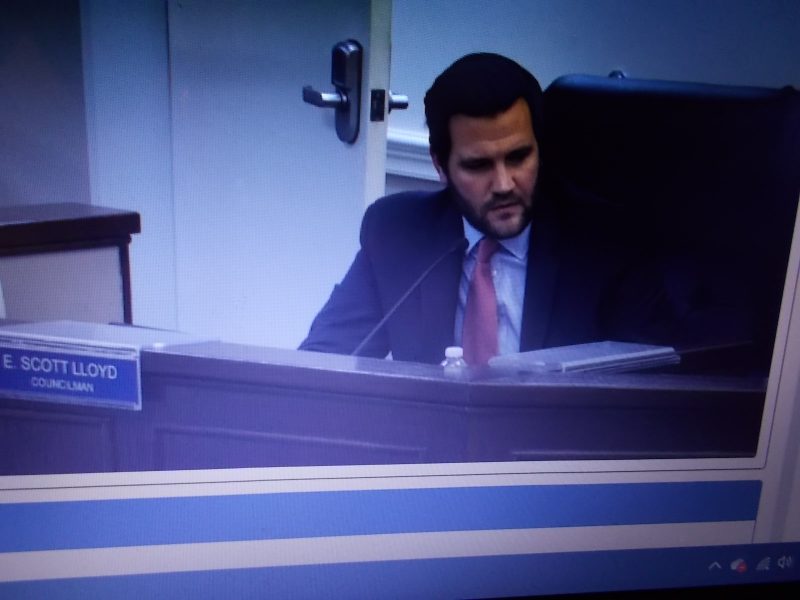 Two of those items were ordinance proposals forwarded by first-term Councilman Scott Lloyd, who made waves in his first month in office with a proposal to rename a town street after his former boss at the federal level, Donald J. Trump. This time Lloyd took aim at pandemic public health safety precautions originating at the State level, starting with a gubernatorial Executive Order loophole on a medical exemption to public mask-wearing.