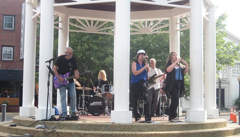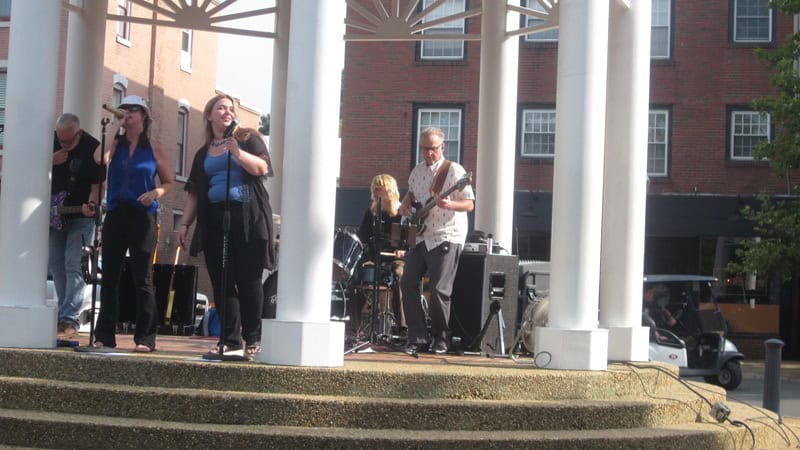 Two shots of Raised on Analog in action on the Gazebo stage.