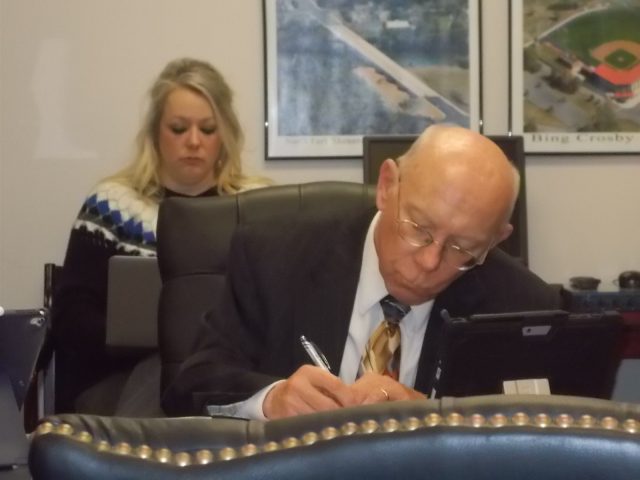 Let’s get council to weigh in on the FOIA compliance issue, rather than the town manager who takes his policy direction from them – THAT is who he takes his policy direction from, right? File photo of council work session with Town Manager Hicks and former Interim Mayor/Interim Town Manager and then part-time Director of Business Development Tederick discussing the agenda’s direction in lower left of photo.