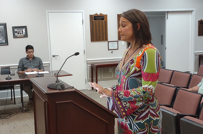 Downtown business and property owner Ellen Aders describes her concerns about adding apartment units to commercial buildings in the commercial district without considering the impacts on neighboring businesses. Royal Examiner Photos by Stephen Sill