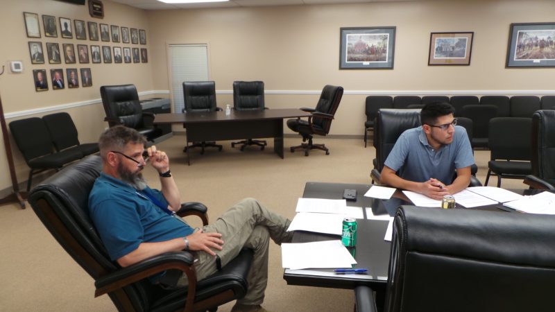 Town Planning staffers Chris Brock, left, and Alfredo Velasquez, were present to answer questions on the planning department side of the Historic Downtown apartment ordinance proposal and two related resolutions sent to the planning commission by the town council for approval.