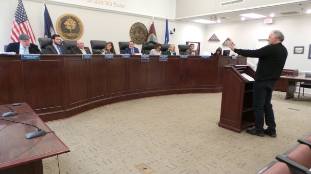 Next was Michael Shutton (at 32:00 to 35:55 marks of the linked Town video). Shutton, whose name we hope we are spelling correctly in the absence of verification from the council clerk, described a recent experience coming to the aid of a middle aged man struggling in a wheelchair in the street at the intersection of Route 340 (South Royal Ave.) and South Street due to the accumulated snow and ice on the sidewalk. Shutton, who said he has children at both Skyline Middle and High Schools, noted he had also seen children walking toward the schools in the street for the same reason.