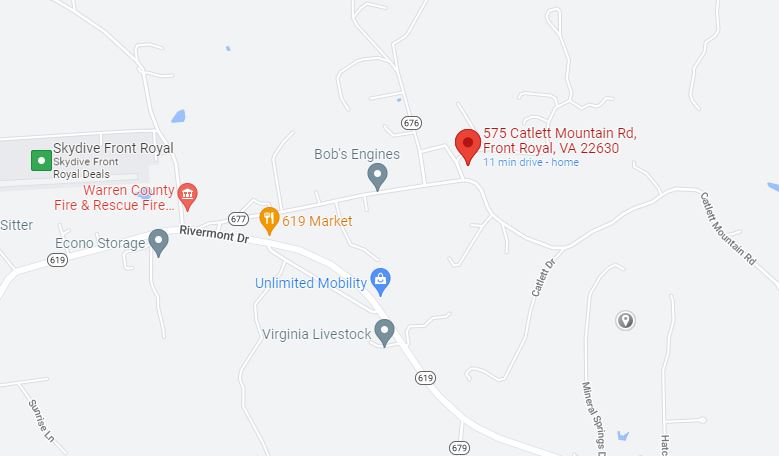 Easy to find, follow the signs on Route 340 South to Route 619.