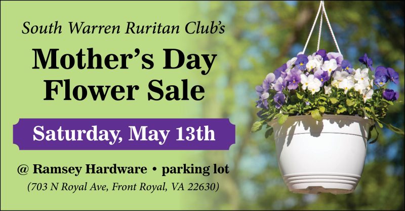 Town Talk: South Warren Ruritan Club – Flower Basket Sale on May 13 at Ramsey Hardware in Front Royal