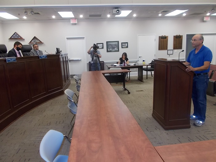 As he has on more than one occasion, council candidate Bruce Rappaport, at podium June 22, makes a case against the current council’s actions regarding the EDA – both the existing and envisioned new and totally Town-funded one. But council appears committed to a legal gamble that $20-million in civilly awarded assets from the old EDA would help that new start-up project.