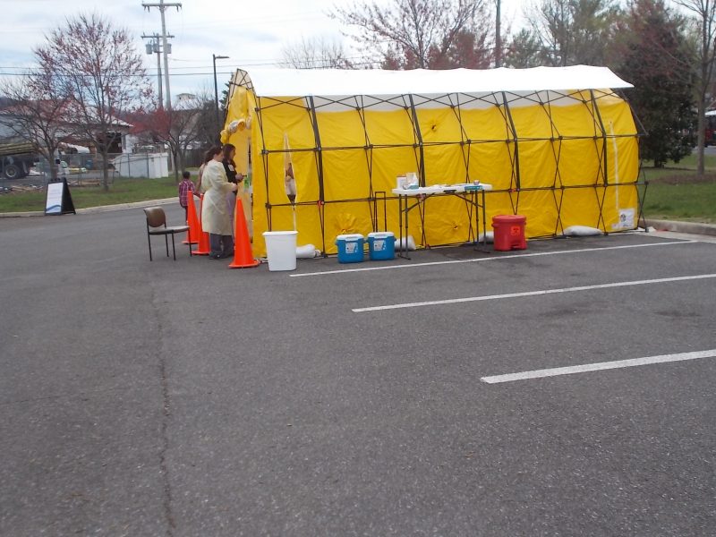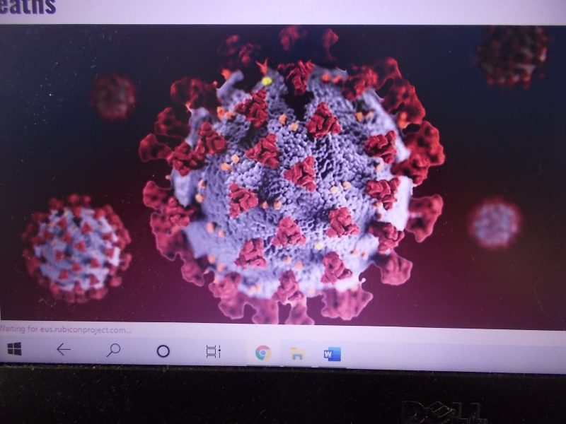 Above, the Valley Health COVID-19 testing tent at its original N. Commerce Ave. location. It has since moved closer to the building and has seen a recent 40% rise in positive tests as the county total has risen to 85, as of yesterday, May 11. Below, the nasty little viral bug they are looking for.