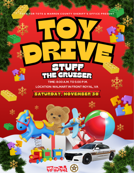 Henry also told us that her mom Bonnie was in the process of trying to organize a challenge between the Warren County Sheriff’s Office and Town of Front Royal Police Department for a Toys for Tots’ “Battle of the Badges” competition. “We’ll be at Wal-mart on November 30th, and they’re going to be collecting toys and monetary donations,” Erin told us of the as-yet to be finalized event, which if only one agency was able to attend, could be renamed “Stuff the Cruiser” she suggested.