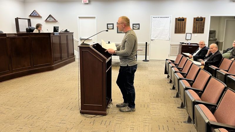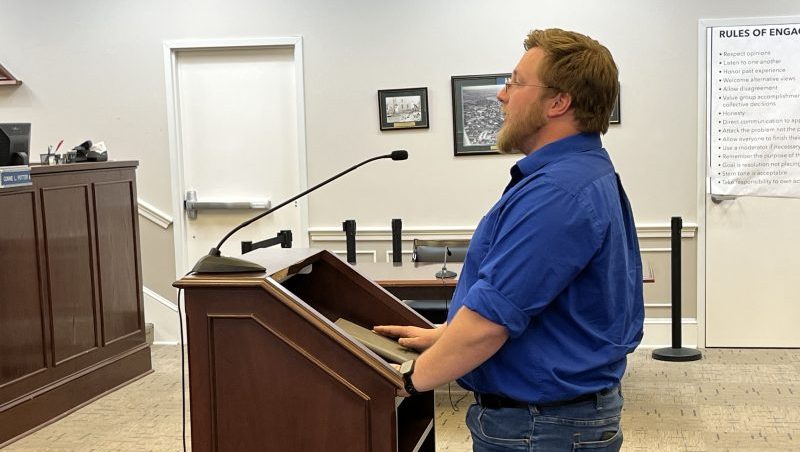 During public comments, Chairman of the Board of Architectural Review, Collin Waters, addresses the commission about potential changes to zoning ordinance affecting the historic district.