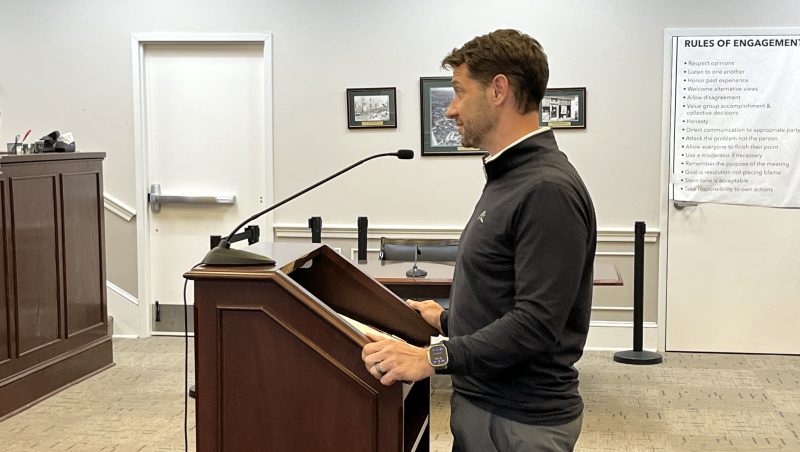 Chris Hornung, Chief Development Officer of Rappahannock Development Group, speaks in favor of a special exception to the required road width on the developing Marshall’s Glen subdivision.