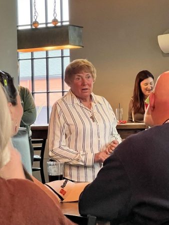 So, what was she doing at the Rotary fundraiser at a Main Street eatery and bar on a Friday evening? The Rotary organizing group felt her presence would be appropriate with Kentucky Derby week, opening the following Monday. The race is on Saturday, May 6, and the favored horse is a local one, Forte, born and bred on a farm in Clarke County!