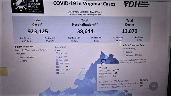 A check of the Virginia Department of Health website indicated that while Warren County continues to trend poorly against statewide numbers, it is faring somewhat better at the middle of Lord Fairfax Health District (LFHD) COVID statistical pack. However, that may say more about generally poor numbers throughout the LFHD, Shenandoah and Page Counties in particular, than be a positive sign for Warren County.
