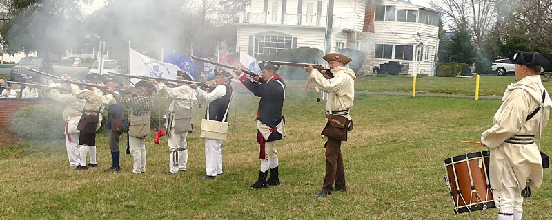 Virginia State SAR President Dr. Michael Weyler delivered remarks and led the wreath presentations. Wreaths were placed by Randy Atkins, Virginia Society 3rd Vice President representing the Fort Harrison Chapter; Paul Christensen for Col. James Wood II; Ken Morris for George Mason Chapter; Paul Parish for General Daniel Morgan; Bill Tugman for Col. Fielding Lewis; Susan Lauer for Fort Loudoun DAR; Leslie Caliva and George Donovan for the American Red Cross; and Charles Harbaugh on behalf of the Town of Middletown.
