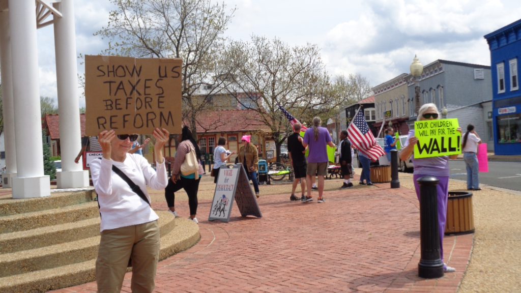 And with tax reform – early outlines of which indicate additional tax breaks for the wealthiest Americans – a stated priority of one of the wealthiest presidents in American history, Trump’s tax history is an ongoing target of his critics, including those gathered at the main historic downtown intersection of Front Royal, Virginia on April 12.