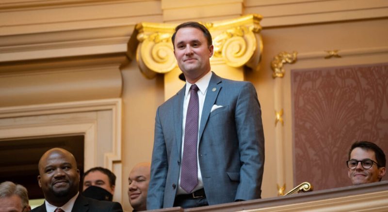 Attorney General Jason Miyares is introduced in the Senate gallery. (Ned Oliver/Virginia Mercury)