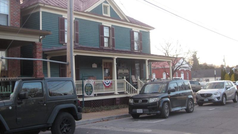 The Board House, housing the Virginia Beer Museum, and below the Garrison House, directly across Chester St., now housing a legal firm. The two businesses have had contrasting results in seeking off-street parking exemptions. Of course, that yellow-painted Chester St. curb won’t give you an exemption.