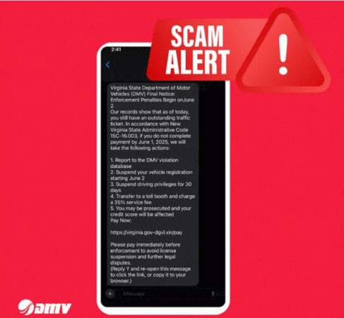 Virginia DMV Warns: Don’t Fall for the Fake Fine Text Scam