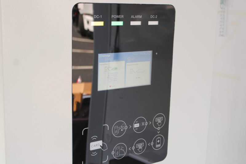 The screen of an charger for a municipal electric vehicle. (Charlie Paullin/Virginia Mercury)