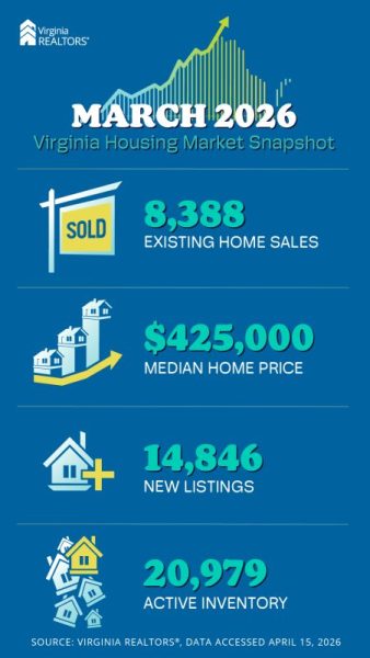 “March’s numbers confirm that Virginia’s housing market is building real momentum in 2026,” said Virginia REALTORS® Chief Economist Ryan Price. He noted that while demand is strong, mortgage rates and economic conditions could affect market performance in the coming months.