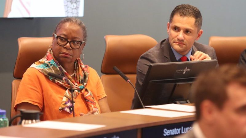 Sen. Mamie Locke, D-Hampton (left), on Monday requested a Senate subcommittee postpone discussing her bill on online gaming. (Nathaniel Cline/Virginia Mercury)