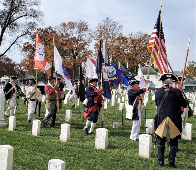 On November 11, 2021, the Colonel James Wood II Chapter, Virginia Society Sons of the American Revolution, and the American Red Cross of Greater Shenandoah Valley (ARCGSV) sponsored a commemoration of Veterans Day at National Cemetery, Winchester, Virginia.