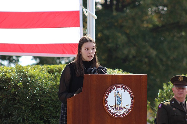 A middle schooler from Fairfax and a high school sophomore from Patrick County were the first place winners in the Virginia War Memorial’s 2021 Veterans Day Student Essay Contest. The winners were announced at the 65th Annual Commonwealth’s Veterans Day Ceremony held Thursday, November 11 at the Virginia War Memorial in Richmond and livestreamed on social media.