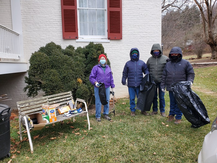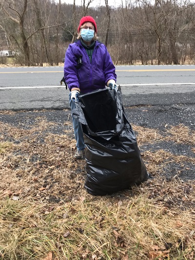 Most of the cleanup crew members met at Mountain Home B&B about 10am on January 18th, dressed for the weather and wearing good boots for tromping along the side of the road and into the brush. Mountain Home provided trash bags and gloves, and offered a free Gatorade or Vitamin Water for each volunteer. The B&B owners also assured participants that they would transport all the bags of trash to one of Warren County’s five refuse/recycle collection sites. Several participants also helped with taking pictures to commemorate the event.