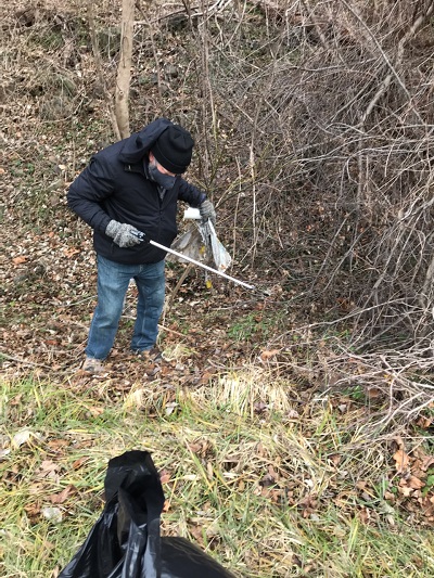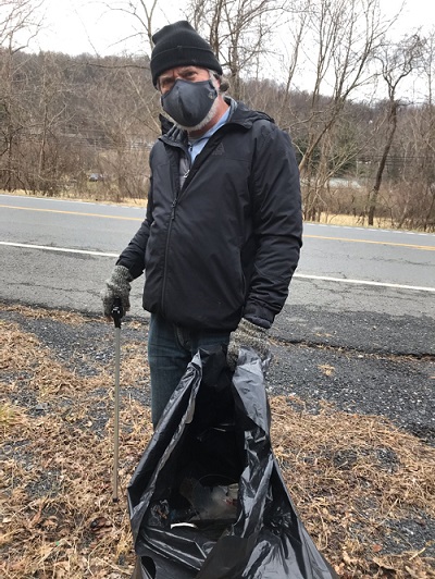 As part of this year’s National Day of Service, a group of folks from Warren County decided to clean up sections of Route 522 between Robin Lane and Gate 3 of the Smithsonian Conservation Biology Institute. It was a perfect day for the cleanup, with temperatures above freezing and into the 40s, and little wind or precipitation. One big advantage of doing a cleanup at this time of year is that you can go into the underbrush and not worry about encountering a snake, or dealing with ticks, spiders, etc. In addition, with the leaves off the trees and bushes, it is easier to spot trash.