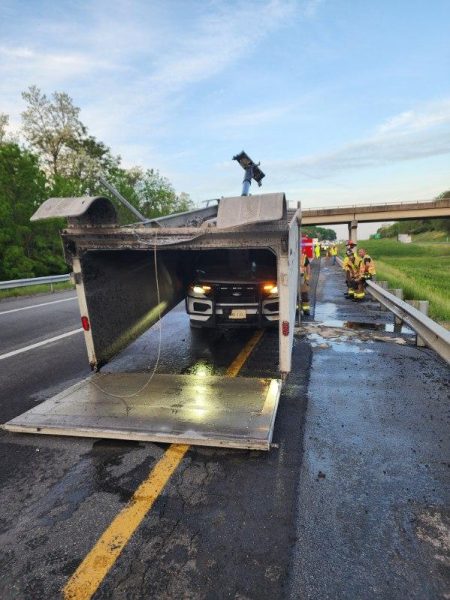 A 2005 Kenworth dump truck was traveling north on I-81 when the driver accidentally engaged the dump bed, which raised it and caused it to collide with the bridge overpass. The collision caused the dump bed to detach from the truck, slide backward, and land on a northbound 2022 Ford Explorer, which was driven by a Frederick County Sheriff’s deputy.