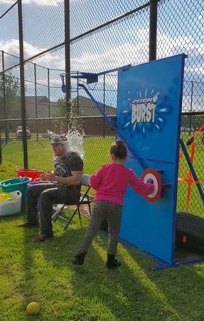 Some of last year’s favorite stations are back, including the Pitch Burst and the Obstacle Course. The Pitch Burst machine features a target (similar to a dunking booth) and a basket with a large water balloon. When the target is hit, the balloon dumps water onto the “volunteer” in the chair. The accompanying lesson is that it demonstrates what can happen when we hold too much in and our emotions “burst.” The obstacle course—which this year has been upgraded to a large, inflatable one—is designed to teach resilience even when life throws obstacles our way.