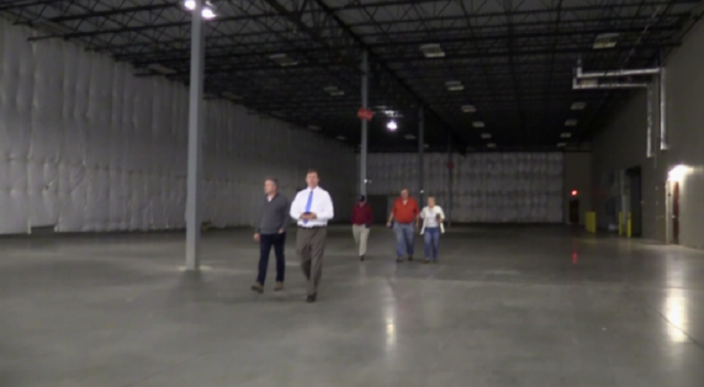 Then EDA Executive Director Doug Parsons, white shirt, leads EDA board members on a tour of the 426 Baugh Dr. warehouse space.