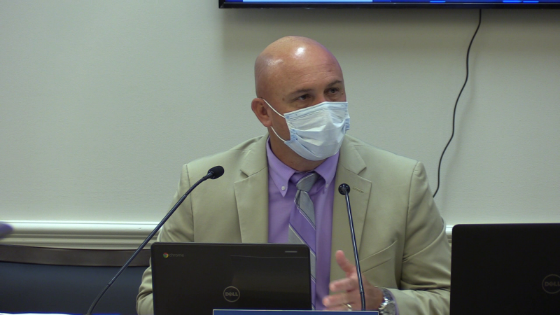 “As a division, we are going to recommend that students in grades six through 12 wear a face covering all day long – both students and teachers,” he said. “For elementary school students … we recommend that when they walk into the building or are in transition [in the hallways, for instance] that a face covering is on. But while the student is seated at their desk, they may be able to remove that face covering.”