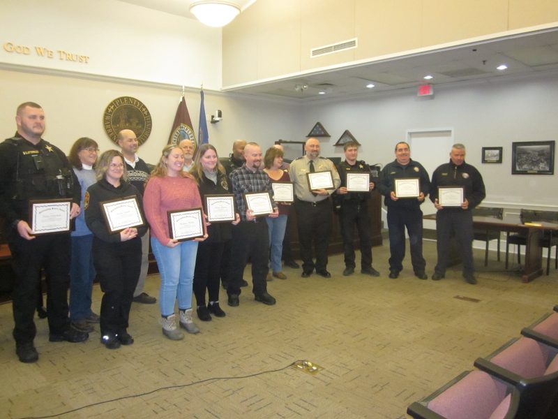 Thanks to Board Chair Cheryl Cullers and Sheriff Crystal Cline for their assistance last night in verifying that none of the four “20-year minimum Retirees” were present to be photographed for the event. Who knows where retirement might lead you on any given day, especially to avoid a major winter weather event and its ongoing clean-up work in sub-freezing temperatures forecast for the coming week. Have fun, and stay warm, retirees.
