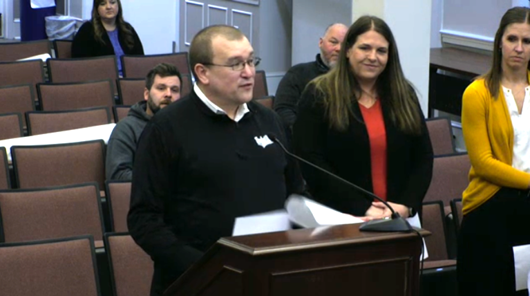 Dr. Christopher Johnston, principal at Warren County Middle School, along with Krystal Hall, assistant principal at WCMS, and Rebecca Webster, an eighth-grade English teacher, gave their reports to the Warren County School Board.