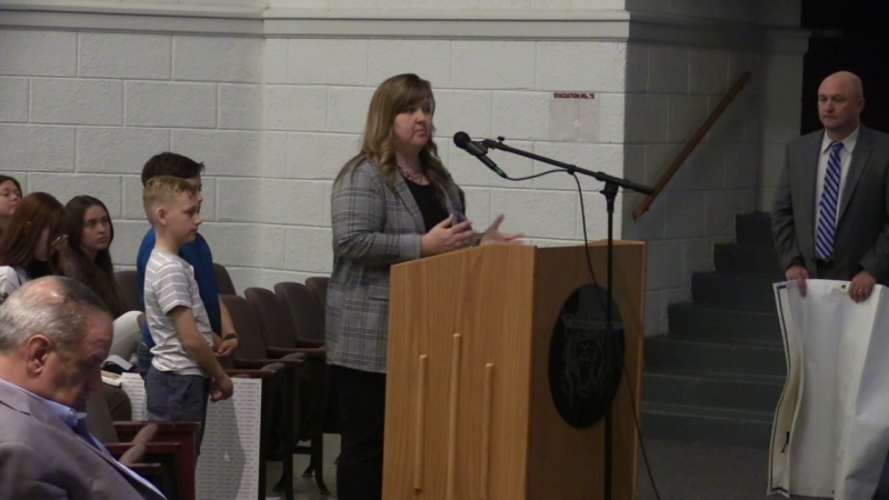 Holly Deaner (above), Dean of Students at Warren County Middle School, on Wednesday accepted the WCPS Secondary Attendance Award for her school for the month of March, and also discussed chronic absenteeism.