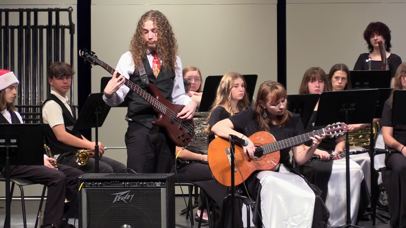 A poignant moment was Heath Coe’s bass and Madison Funes’ guitar duet of “Silent Night.” The band’s rendition of “Greensleeves” was followed by Ellie Boudreau’s captivating flute solo in “Have Yourself a Merry Little Christmas.” The concert concluded with “Winter Holiday,” a piece that captured the essence of the season.