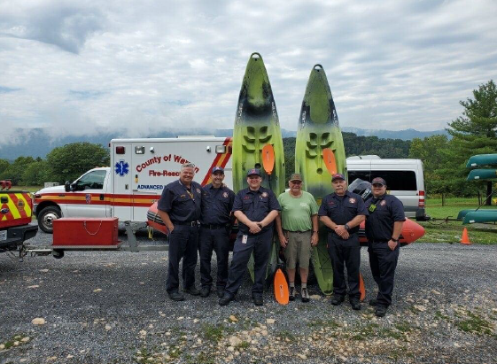 The Warren County Department of Fire and Rescue Services recently accepted a donation of four kayaks to assist the Departments Water Rescue Program. The generous donations were made by both Downriver Canoe Company, located in Bentonville, and by Front Royal Outdoors, located just outside of Front Royal on Stonewall Jackson Highway.