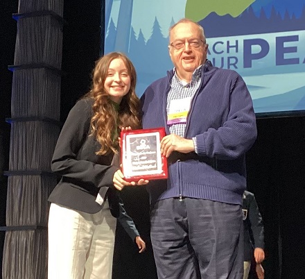 Accepting the chapter’s Blue Chip in the Annual Report of Chapter Activity are Ginger Gouda, Chapter President, and Ella Martin, Chapter Vice-President of Corporate Information.