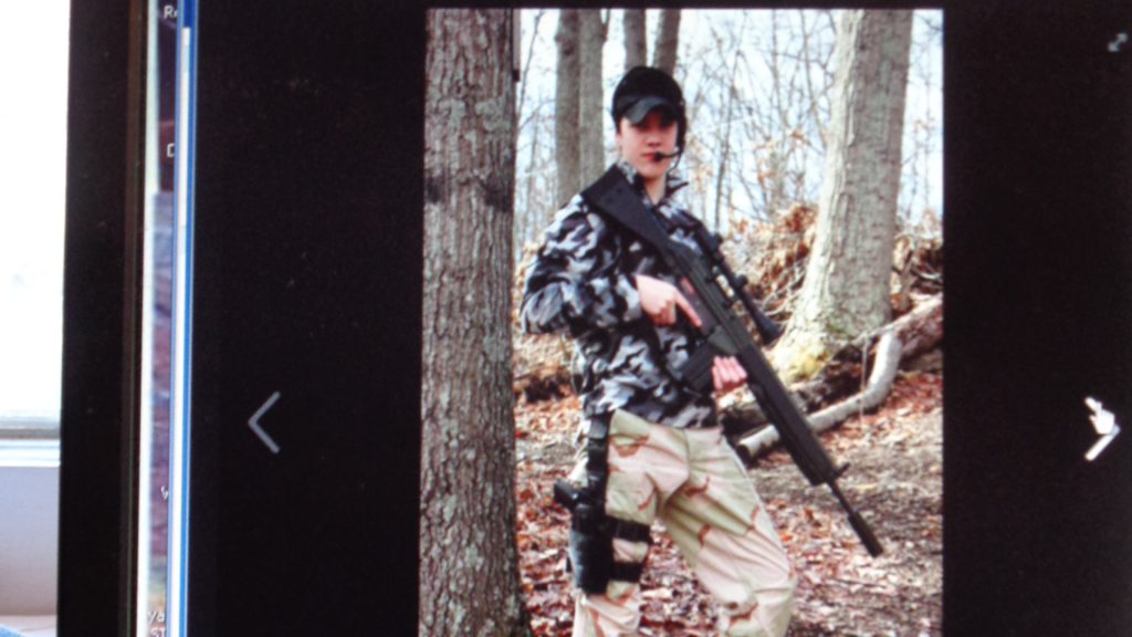 Images from Caleb Sutphin’s Facebook presence at the time of the January hoax bomb incident: above, a rather malevolent clown; below, down the barrel.