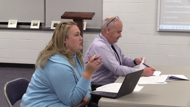 Warren County Public Schools Assistant Superintendents Heather Bragg (left) and George “Buck” Smith (right) are forming a committee to develop a procedure the school division is required to use to notify parents about instructional materials that have sexually explicit content. Video and photos by Mark Williams, Royal Examiner.