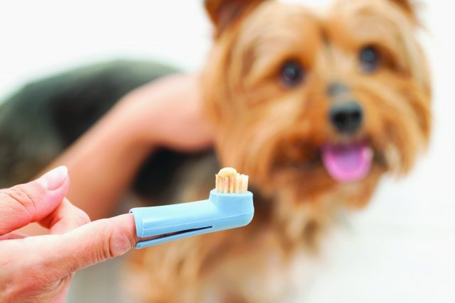 Poor dental hygiene in dogs can lead to diseases such as gingivitis and periodontitis—not to mention bad breath—just as it does in humans. To protect your dog’s oral health, you should brush his teeth on a daily basis. When you begin this type of routine, it’s important to go slowly. First, get your pet accustomed to having its nose and teeth touched; let it taste the pet-specific toothpaste and brush only the front teeth in the beginning. Day by day, and at your dog’s pace, spend a bit more time with the cleaning until you’re able to brush all the teeth. It’s only necessary to brush the outer surfaces. Remember to reward your pet after each session.