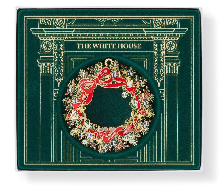 The 2023 White House Christmas ornament is in its gift box. (Photo courtesy of the White House Historical Association)