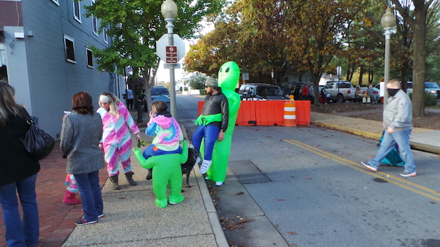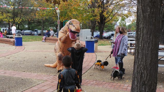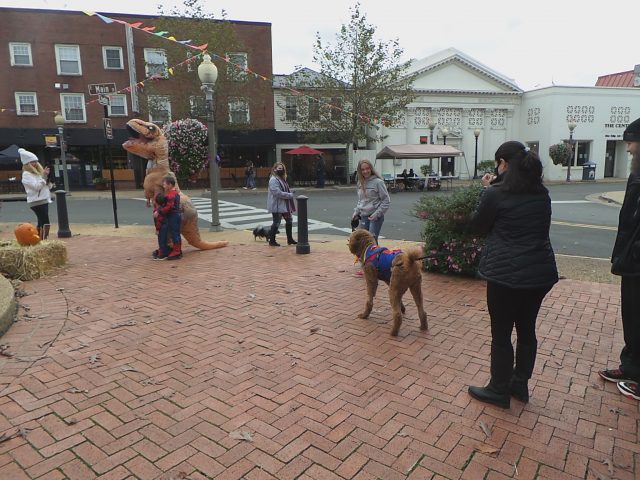 What’s not to LOVE about Downtown Halloween – even in 2020 – during Front Royal’s final weekend walking mall experiment? – Especially when you have escaped the clutches of a looming T-Rex as Amber and her costumed dog Quincy did. Royal Examiner Photos and Video by Roger Bianchini